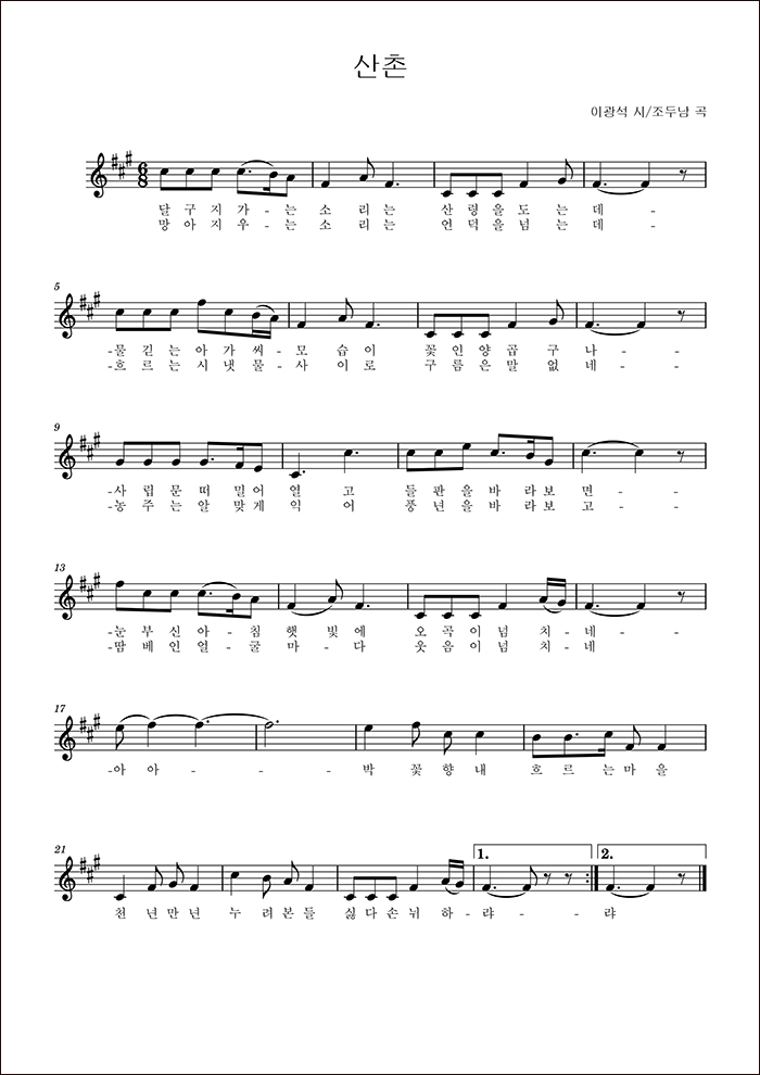 오늘은 음악교과서에 실린 가곡 <산촌> 이야기를 나눠 보겠습니다